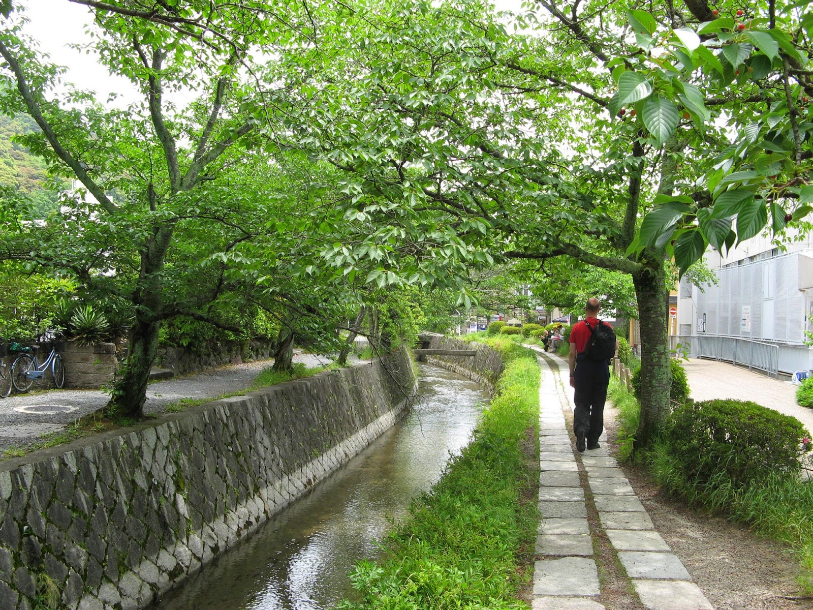 My favourite? From Ginkakuji we chose to walk back the Philosopher's Path (Tetsugaku no michi), a pleasant stone path following a water canal and lined by hundreds of cherry trees. We were to late to see them in full bloom but we did enjoy the approximately two km long walk: small restaurants, cafes, boutiques and private homes along the path, typical Japanese gardens as well as a number of smaller temples and shrines. It was a sunny afternoon so we stopped for a tea and spent some quality time with a book in the shadow of the threes. Marvellous!